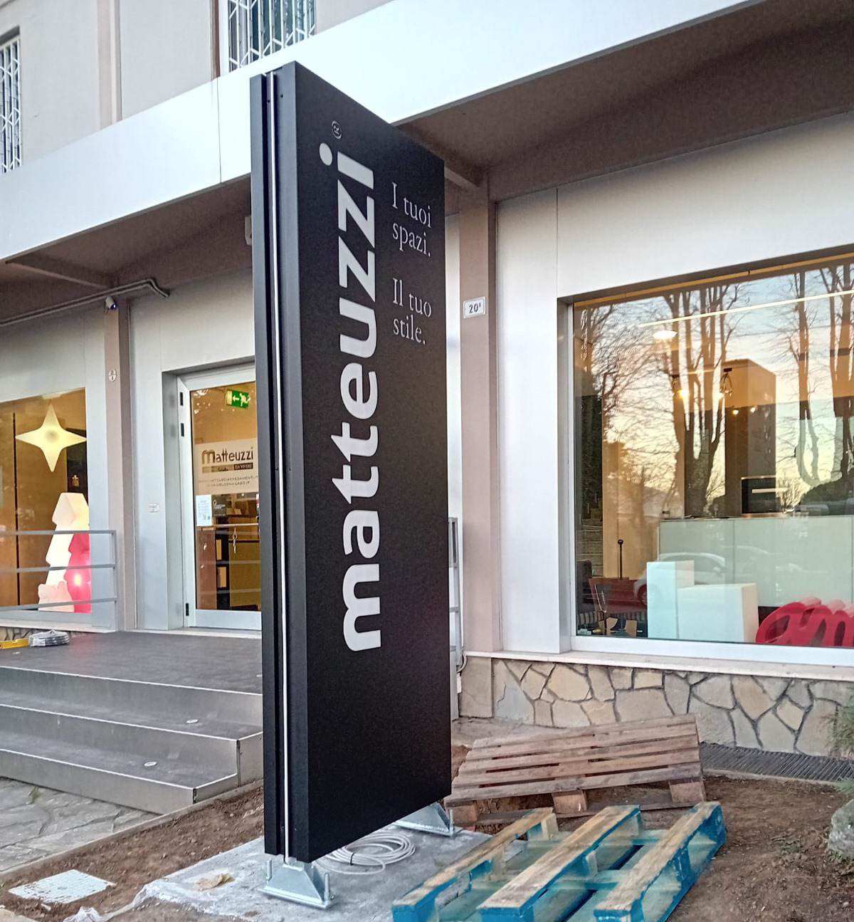 - Monofacciale o bifacciale: a seconda della posizione dell’insegna, può essere visibile da uno o due lati.