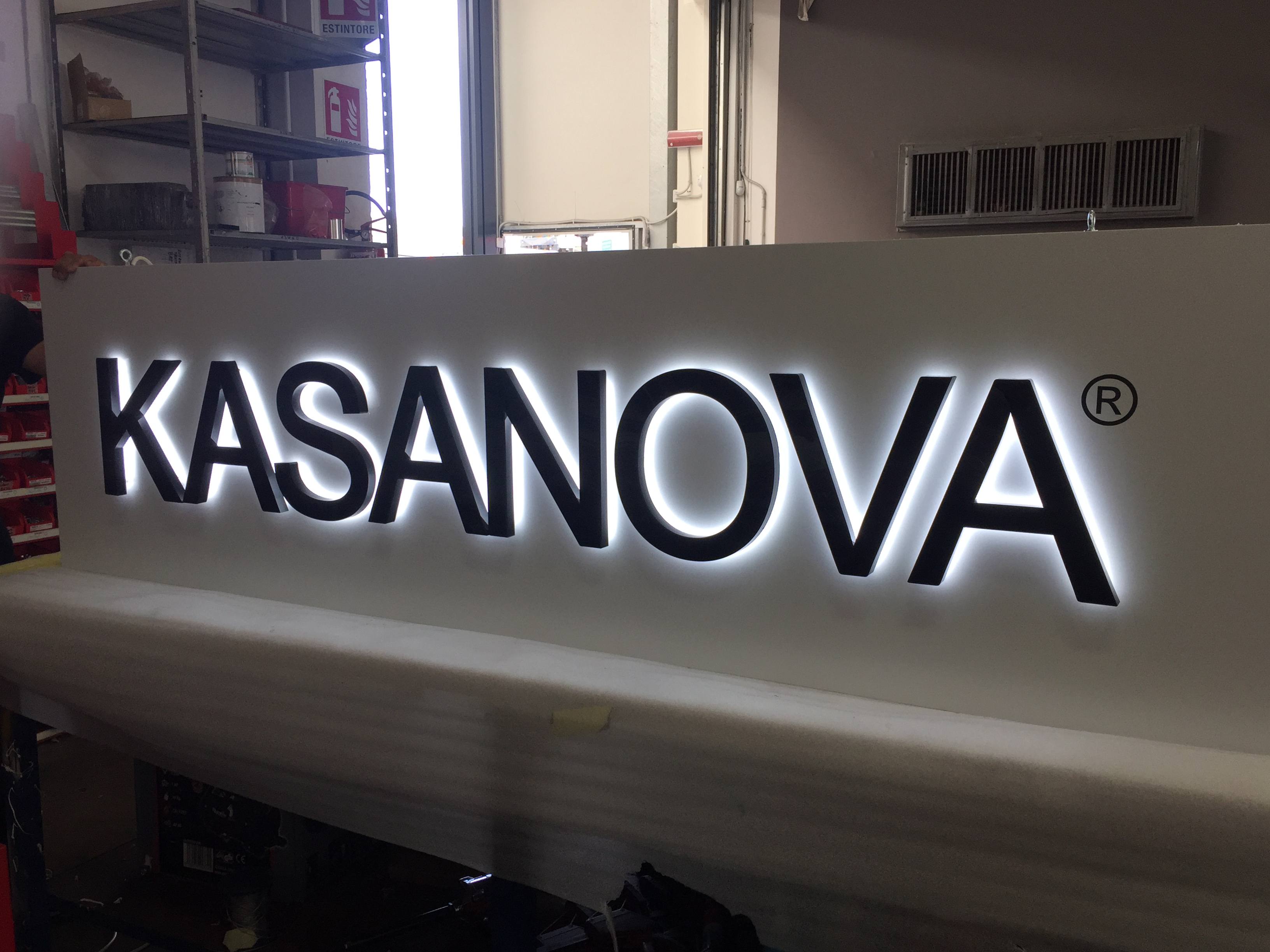 - Dibond o lamiera con scritte e loghi intagliati retroilluminati