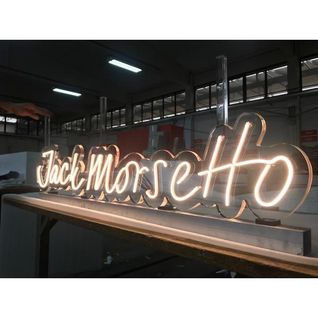 Che si tratti di una scritta elegante per un lounge bar o di un’insegna giovane e accattivante per un brand di moda, il tubo LED flessibile è sempre una scelta d’effetto.